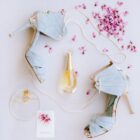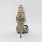 If you are looking for a “something blue” for your wedding, look no further! Lotus features a secure ankle-strap high heel, which makes it super comfortable to wear. The sandals are handmade in baby blue suede leather paired with a rose,tapestry-like patterned fabric on the heel and insole. They are also embellished with pearls and crystals of various colours, giving them that extra sparkle.