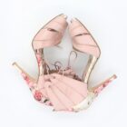 Rosa is the shoe for the girly girl in us. Featuring a luscious dusty pink satin that never goes out of style, paired with a luxurious micado rose patterned fabric, you can’t go wrong with these if you’re looking for a modern, yet timeless shoe.